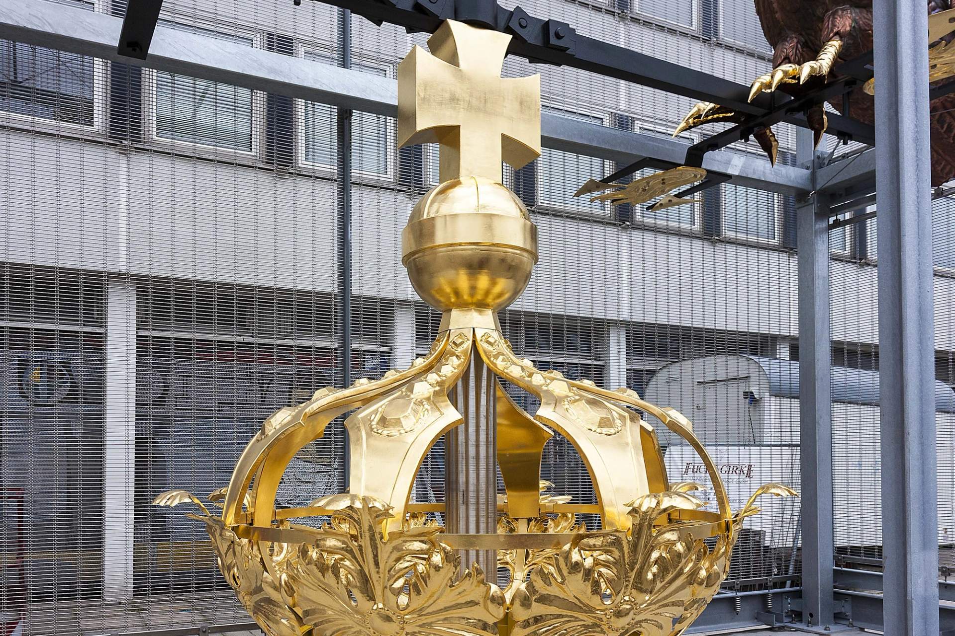 Die Turmhaube bildet das architektonische und symbolische Herzstück der Garnisonkirche. Mit ihren barocken Formen und der goldenen Wetterfahne verleiht sie dem Turm seine historische Silhouette zurück. Derzeit wird sie vorgefertigt – ihre vollständige Montage auf dem Turmschaft ist für das Jahr 2027 geplant.
